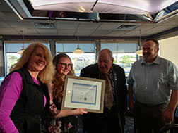 At our April 16th monthly dinner meeting I proposed to our club that we honor Emma for the great work that she had done on behalf of our club. Emma, her mother, Cindee Tine, and her father, Troy Lemieux were invited to our May 21st monthly dinner meeting so we could meet Emma and her family and properly honor her.
