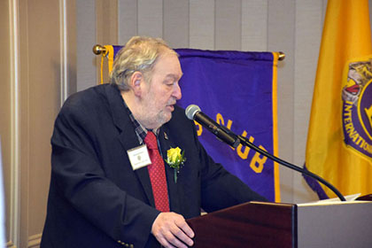 I had Emma and her family stand while I made the presentations. I first presented Emma with the framed certificate. Everyone could tell how proud she was to receive it. Her parents looked on with great joy as well. I told Emma that many young teenagers seem not to have time to help others and that Emma should be very proud of herself for what she had done. Everyone in the club applauded Emma and her hard work. I then told Emma that I was presenting her with a special gift that we normally present to visiting District Governors. I presented her with a bronze lion statue. Emma looked delighted and so were her mother and father. In fact the entire club again broke out with more applause because we were all delighted.